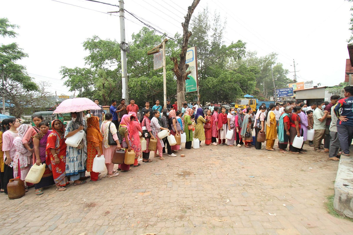 শহরের চারটি পাম্প ঘুরে দেখা যায়, ভোর পাঁচটা থেকেই গ্রাহকেরা ট্যাংক, গ্যালন ও প্লাস্টিকের বোতল নিয়ে লাইনে দাঁড়ানো শুরু করেছেন। যদিও সকাল ৯টা থেকে এসব পাম্পে ডিজেল বিক্রি শুরু হওয়ার কথা ছিল। এরপরও আগেভাগে সিরিয়াল পেতে অনেকেই ভোরে পাম্পে এসে হাজির হয়েছেন।